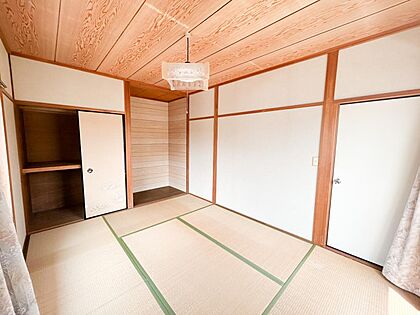 (リフォーム前)2階6畳和室です。天井と壁はクロスを貼る予定です。畳の表替え、襖の張り替えを行います。