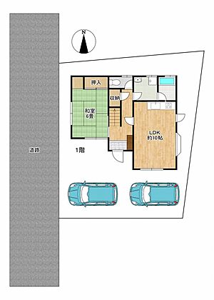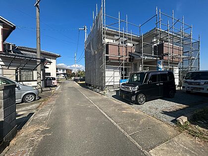 前面道路幅員は約3.9m、敷地の西側が瀬しています。交通量は少ないので落ち着いて暮らせますね。