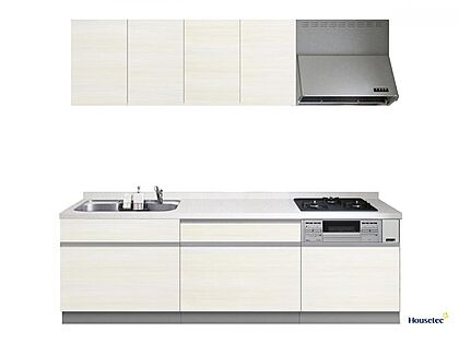 【同仕様写真】キッチンはハウステック製の新品に交換します。引出には一升瓶や寸胴鍋など背の高いものも収納できます。天板は熱や傷にも強い人工大理石仕様なので、毎日のお手入れが簡単です。