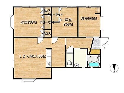 【リフォーム後間取り図】3DKから3LDKの間取りにリフォーム予定です。水回り新品交換を行います。