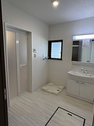 【リフォーム済み】床はクッションフロアに、壁はクロスに張替え、洗面台も新品に交換しました。