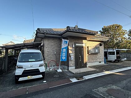 【リフォーム中】カーポート付きの駐車場の写真です。高圧洗浄と雨樋の補修も行う予定です。