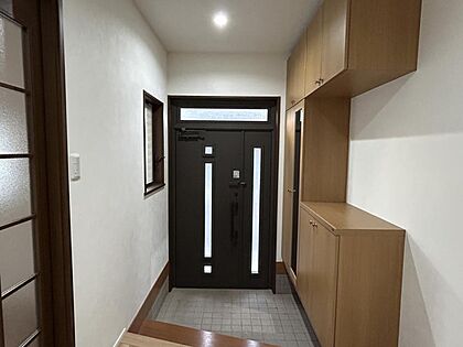 【リフォーム済み】玄関(内観)の写真です。壁をクロスに張替えし、シューズボックスはクリーニングしました。