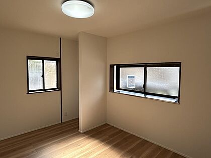 【リフォーム済み】8帖の洋室の写真です。天井と壁はクロス仕上げにしました。