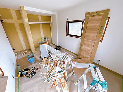 【リフォーム中。10/25撮影】2階東側6.5帖洋室です。床はフローリング張し、壁・天井をクロス張りします。新品のオープンクローゼットも設置します。