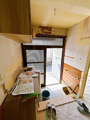 【リフォーム中。10/25撮影】1階キッチン裏にパントリースペースを設置します。ぜひ一度現地をご確認ください。