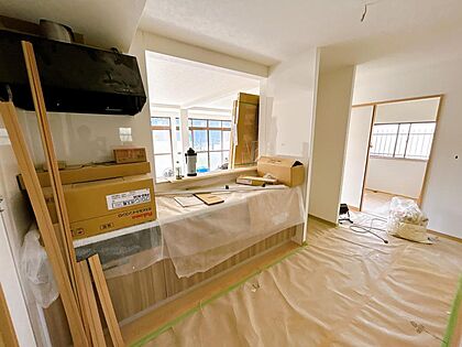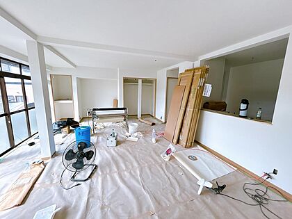 【リフォーム中。10/25撮影】DK・和室2間を繋げて、約26帖のLDKに間取り変更しているところです。