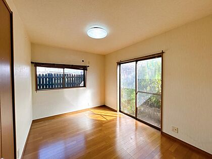 【洋室】1階南側洋室です。南窓からの光が差し込んで、明るい空間となっております。