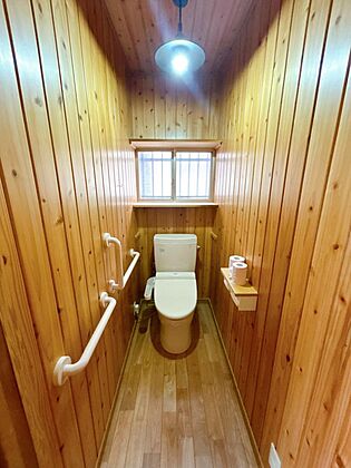 【トイレ】トイレの壁にはヒノキ材が使用されており、落ち着きと上質さを感じる空間になっております。