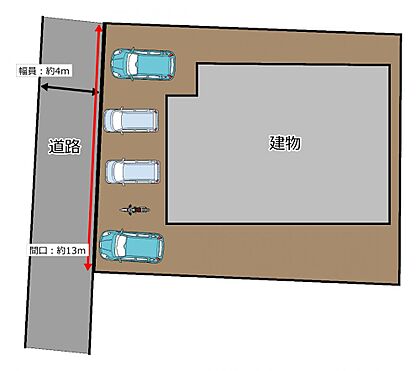 【区画図】解体後は並列4台駐車可能になる予定です。車を停めることは難しいスペースも、自転車やバイクなどを停めて有効活用できますね。
