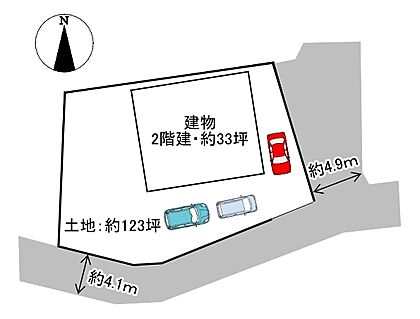 備考 【接道】 角地 ( 公道 南 4.1m ) ( 公道 北東 4.9m )