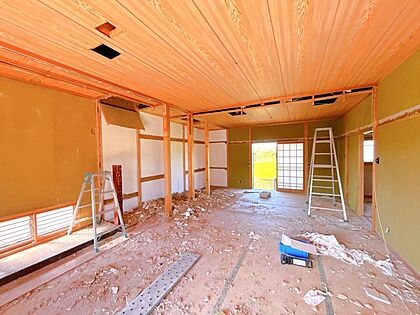 •  【リフォーム中】1階南西側和室です。フローリングやクロスを新調し、明るいリビングが出来上がります。