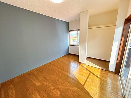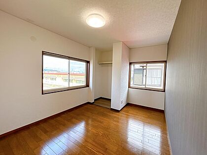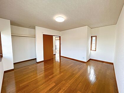 【リフォーム済】2階南側5.13帖洋室です。床ワックスがけ、クロス張替え、建具扉・照明器具交換、火災警報器設置を行いました。