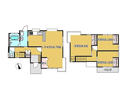 【リフォーム後】3LDKです。キッチンから洗面脱衣所に行ける動線が魅力的。各居室に収納があるので、お片付けラクラクです。