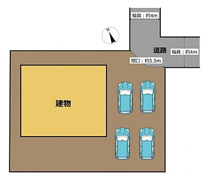 【敷地図】当住宅の敷地図イメージです。図と異なる場合は現況を優先します。駐車場は普通車4台駐車可能です。