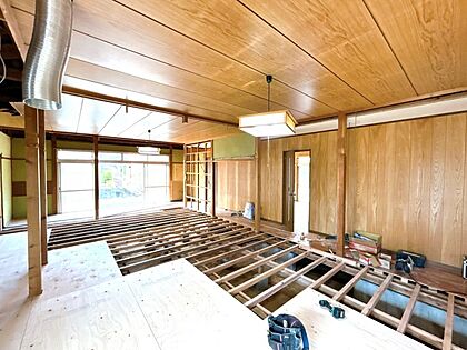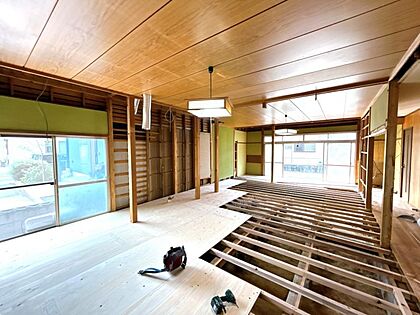 【10/25撮影・リフォーム中】北東側8畳和室の写真です。奥に見えます南東側8畳和室と広縁を繋げて約23.5帖LDKに間取変更予定です。