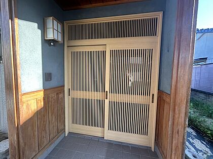 【リフォーム前】玄関ドアの写真です。クリーニングと鍵交換を行います。