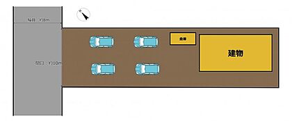 【敷地図】4台以上楽々駐車できます。お車を3台以上お持ちのご家庭でも安心ですね。※当住宅の敷地図イメージです。図と異なる場合は現況を優先します。