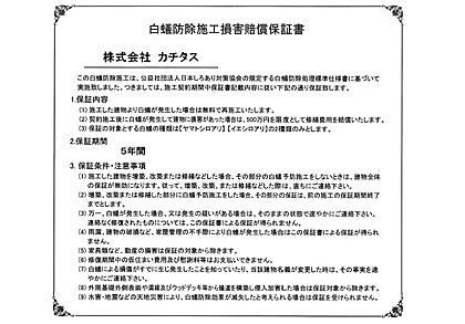 シロアリ防除には5年間の保証付き(施工日から。施工箇所のみ施工会社による保証)