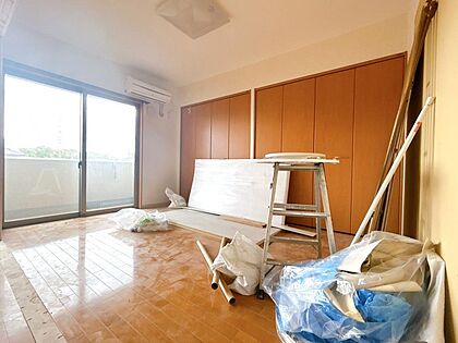 【リフォーム中11/1】南西側6.5帖居室です。フロアタイル重張、クロス交換、照明交換等を行います。こちらの居室にはエアコン1台設置予定です。