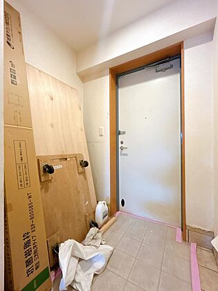 【リフォーム中11/1】玄関です。シューズボックス交換、クロス張替、照明交換等を行います。玄関周りが綺麗だと嬉しいですね。