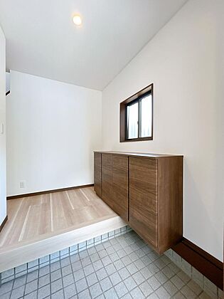 •  【リフォーム済】内観玄関写真です。シューズボックスは新品に交換いたしました。靴が増えても収納できます。