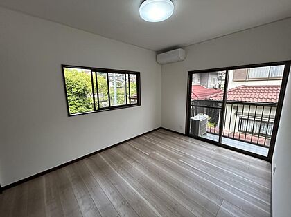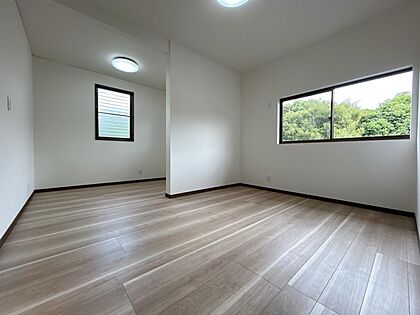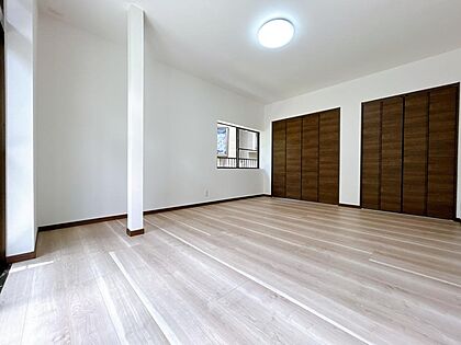 •  【リフォーム済】2階南側洋室写真です。床はフローリング重張り、クロスの張替えをいたしました。