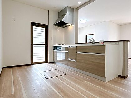 •  【リフォーム済】キッチン写真です。キッチン後ろのスペースは、広いので冷蔵庫、カップボード等置いても狭くなりません。