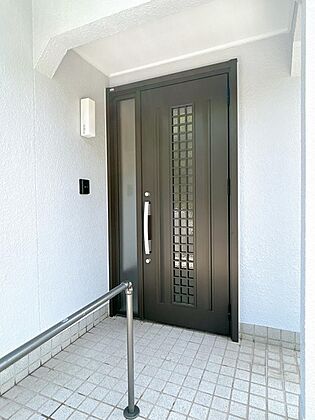 •  【リフォーム済】外観玄関写真です。鍵の交換、クリーニングを行いました。
