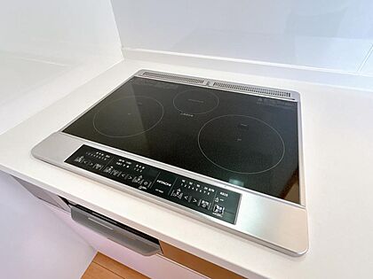 【リフォーム済】新品交換したコンロは三口のIHコンロ。複数品目一緒に作れて料理の幅も広がります。心強い味方です!