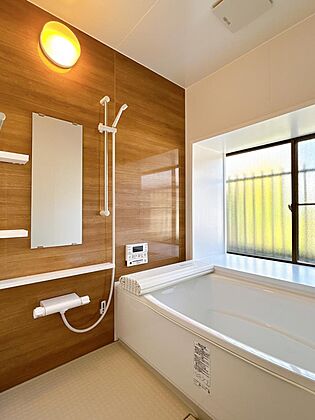 【リフォーム済】LIXIL製のユニットバスに新品交換しました。1坪タイプなので浴槽に浸かった時に足を伸ばせるのが嬉しいですね。