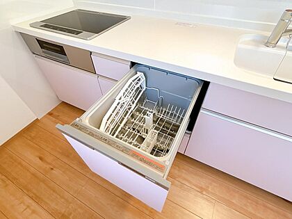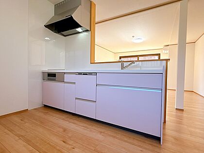 【リフォーム済】新品交換したキッチンは食洗機付き。これがあるだけで家事の負担がより軽減されます。水切り置き場としても使えるのでキッチンが広く使えますね。