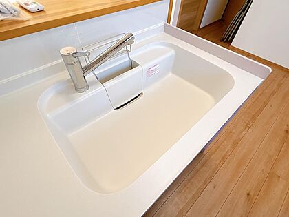 【同仕様写真】新品交換したキッチンのシンクは人工大理石製です。熱に強く、キズも目立ちにくい仕様なので、清潔感が保てます。トップとの統一感もありスッキリとした見た目も好印象ですね。
