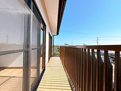 【リフォーム済】バルコニーの写真です。2階の各居室から出入りができます。お布団の干場にもなるよう柵もあるのが便利ですね。