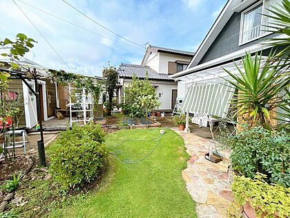 【お庭写真】遊び心のあるお庭です。夏の暑い日には、お庭でビールを飲んだり、プールを置いてお子様を遊ばせたり、花火をするのもいいですね。