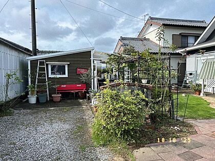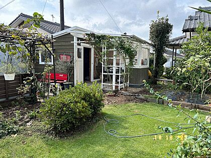 【作業小屋写真】お庭にあるおしゃれな作業小屋です。倉庫としても使えます。改装して書斎やテレワークスペース、ペット小屋など様々な用途でお使い頂けます。