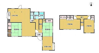 【間取図】5LDKの間取りです。南東側の部屋には流し台がついており2世帯でもお住まいになることができます。