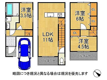南向きLDKで陽当たり良好な3LDKタイプの間取りです