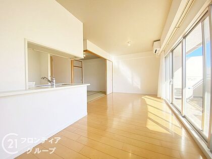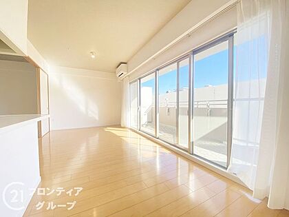 バルコニーに面した広々とした窓のあるリビングです。日中はお部屋全体に明るい光が差し込みます。