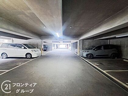 駐車場の屋上に共用スペースあり。エレベーター下りたらすぐ傍にあります。