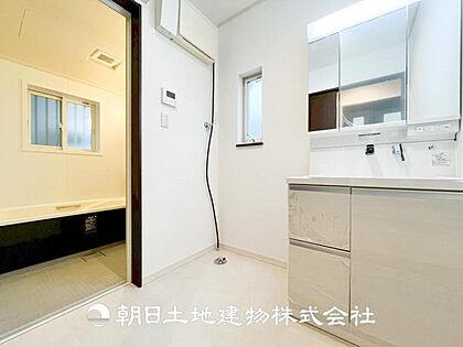 【浴室】上品な色合いが魅力のバスルームは、ほっと落ち着く空間を作り出しています。広々とした浴槽で体を癒やしながら、疲れを取り除けるような仕様です。お子様と一緒に楽しく入るのもいいですね。