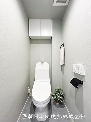 【トイレ】タンクレスの多機能搭載型の温水洗浄付きトイレを設置しています。また、手洗いを設け高級感のある広々した空間です