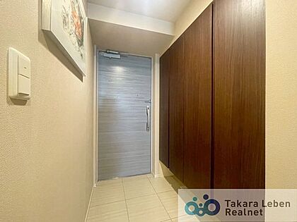 訪れる方を優しくお出迎えする落ち着いた玄関。大型のシューズボックスも据え付けられているので靴の収納に困りません。