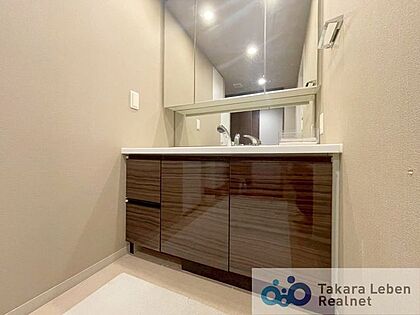 気持ちの良い朝はキレイな洗面所から。鏡裏の収納でモノが出がちな洗面所もスッキリ片付きます。