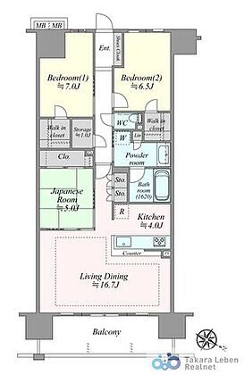 最上階15階3LDK。収納スペースの多いお部屋で、お荷物が多いご家庭も安心ですね。