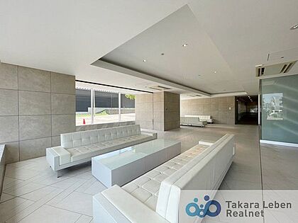 エントランスラウンジ。高級感のあるソファを配し、採光性溢れる空間で、休日の読書が楽しめたり、来客者にお待ちいただく間に優雅な時間をお過ごし頂けます。