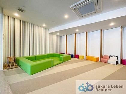 [共用部のキッズルーム]雨の日や、日差しが強くて外で遊ぶのは抵抗があるなという日にはマンション内の子供達が自然に集まりそう。子供達だけでなく、親同士の交友関係・コミュニケーションの輪が広がりますね。