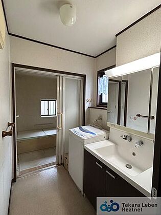 •  2階バスルーム。バタバタしている忙しい朝でもスペースの確保された洗面台では効率良く支度ができます。