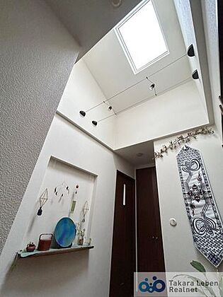 •  2階廊下には天窓があり、開放感のある空間に。