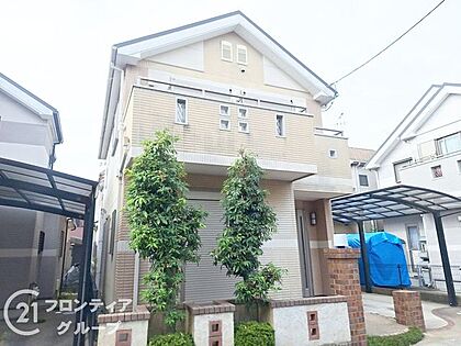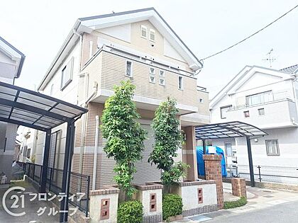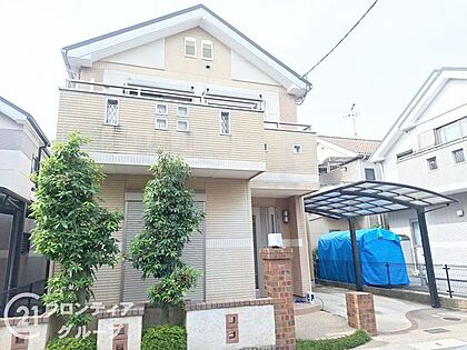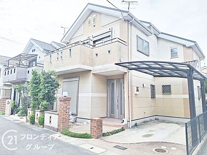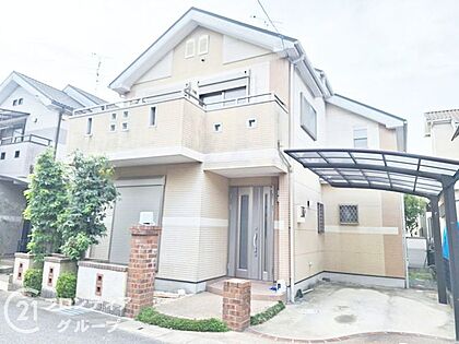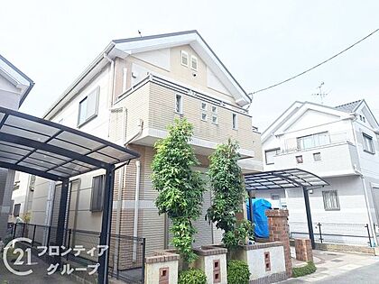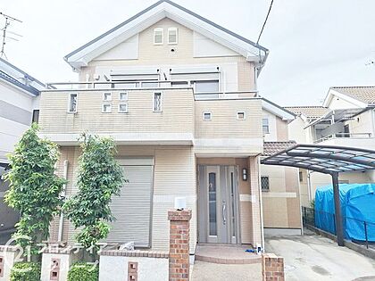 落ち着いた色合いとモダンなデザインが調和した戸建外観。道路からの見通しも良好で、しっかりとした門構えが安心感を与えます。周囲との距離も程よく確保されており、静かな環境と調和した佇まいが魅力です。